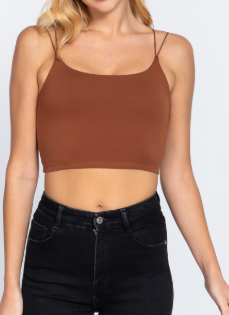 • ROUND NECK ELASTIC STRAP TWO PLY KNIT CAMI CROP TOP