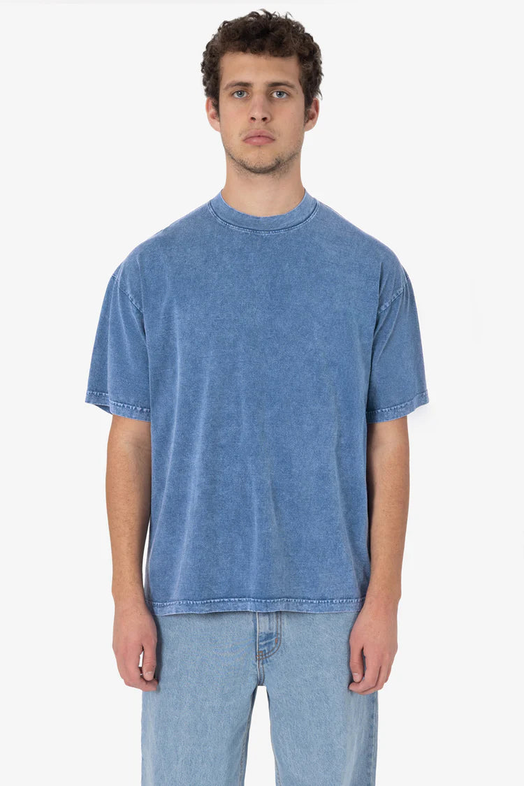 Made of 100% USA cotton, this textile is durable, comfortable, and virtually shrink-free thanks to the garment dye process. Garment-dyed means it's been washed in dye after it was sewn, so the color will stay true even after repeated washings. It also gives a broken-in feel, just like your favorite T-shirt that's been worn for a decade.
